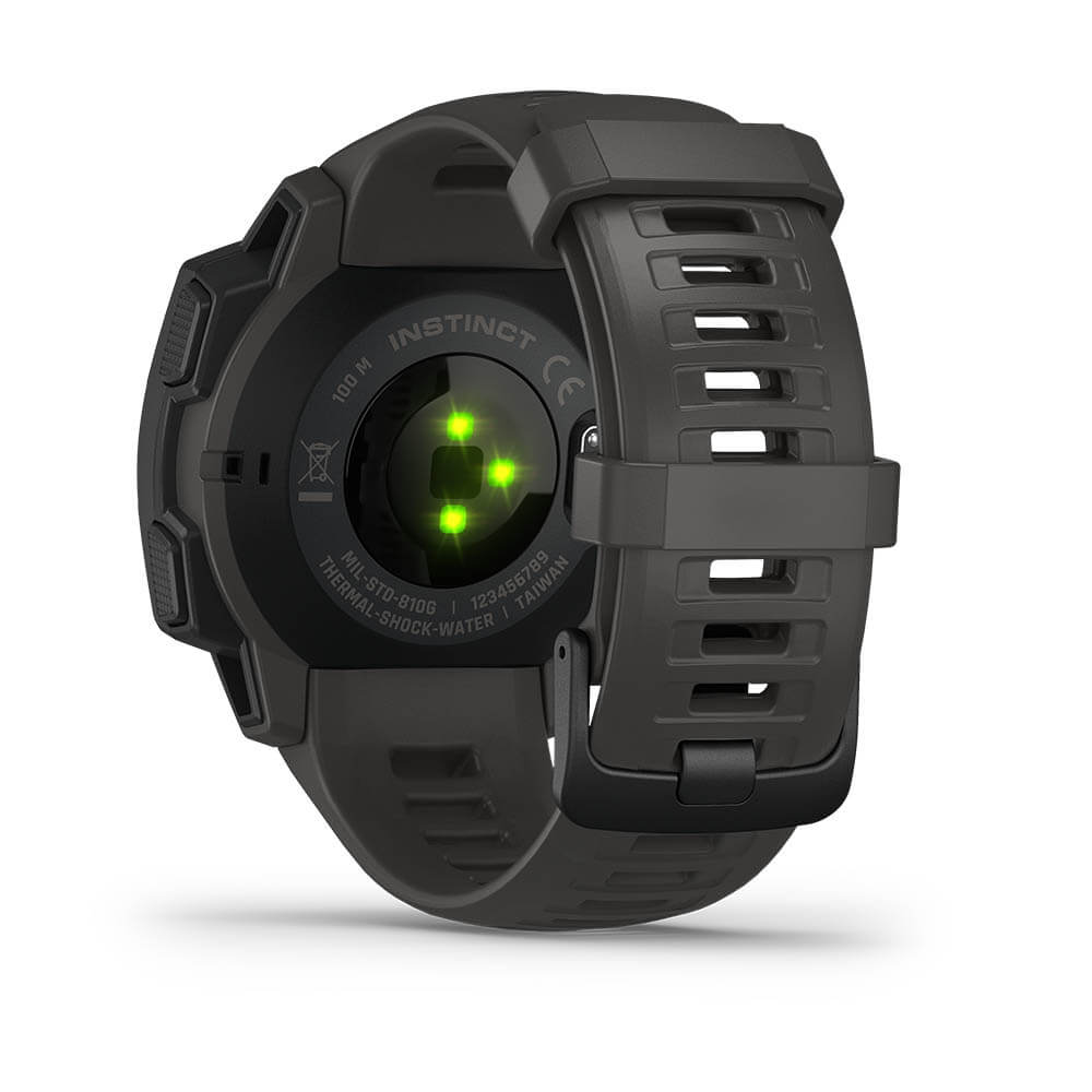 - Durability: Built to U.S. military standards (MIL-STD-810), the Garmin Instinct features a fiber-reinforced polymer case, scratch-resistant display, and thermal, shock, and water resistance up to 100 meters—ensuring it performs reliably in extreme conditions like heat, cold, or rugged terrain.