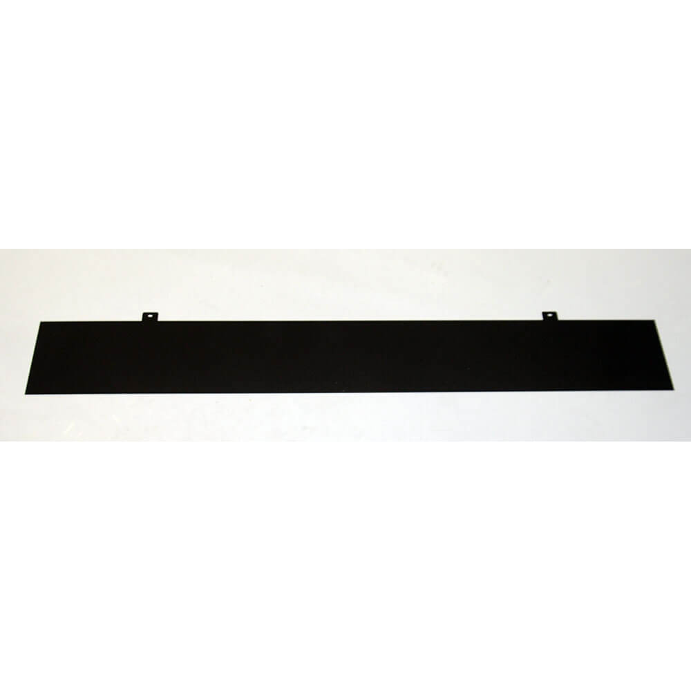 This backing plate measures 44 inches by 6 inches and installs directly beneath the fireplace insert opening. It is engineered to align with the faceplate surround, helping conceal gaps and ensuring a symmetrical four-sided finish when paired with compatible faceplate kits.