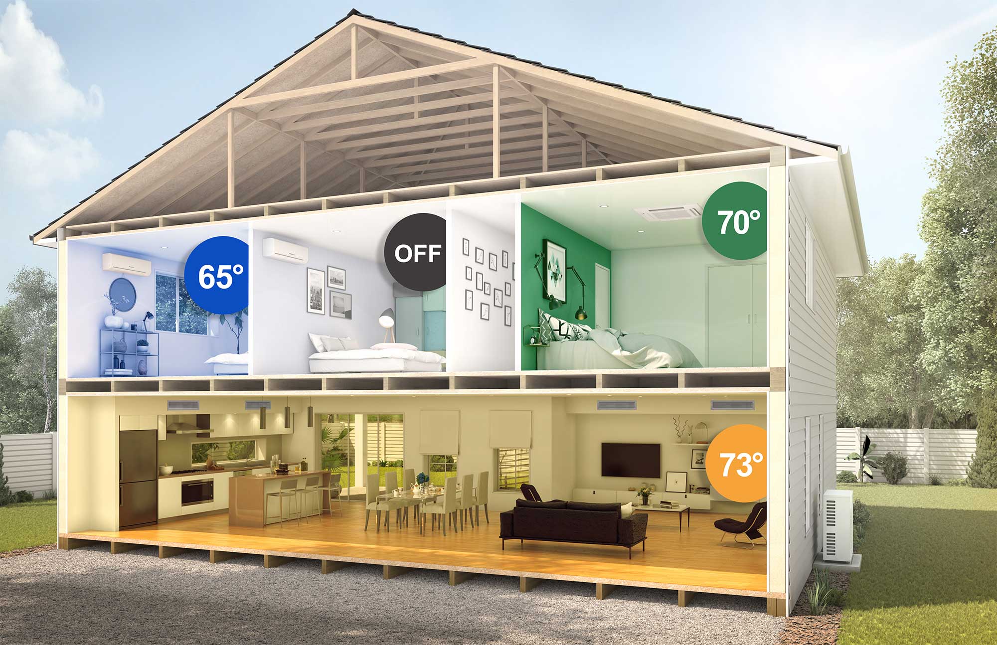 Additionally, ductless mini-splits are more efficient than central HVAC systems because they lack ductwork. In central air conditioning systems, over 30% of energy can be lost through ductwork, especially when the ducts are in unconditioned spaces that become extremely hot in summer.