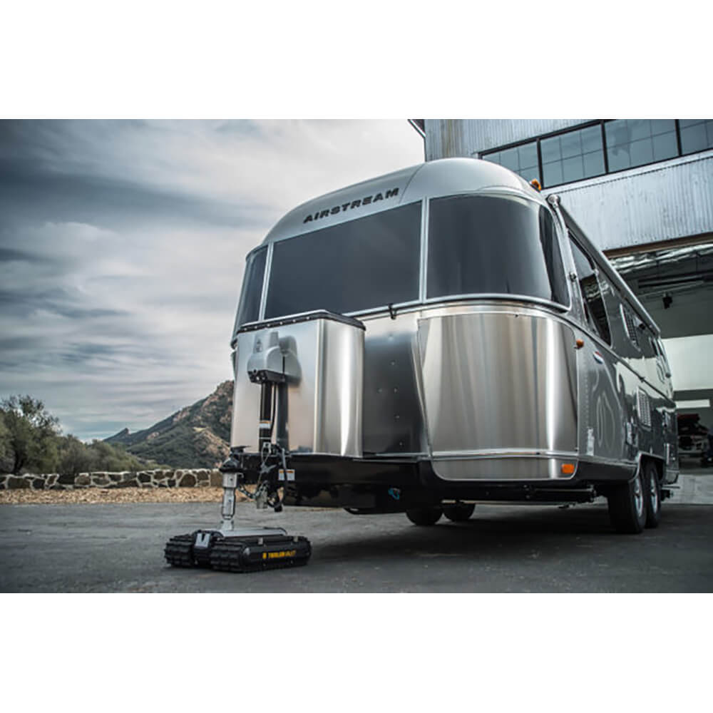 The RVR is a fully motorized, remote-operated trailer valet that comes with a lithium-ion battery which will last for around 30-45 minutes of continuous use before it needs recharging. Use time varies with trailer weight.